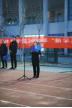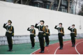 国旗护卫队护卫着鲜艳的五星红旗,迈着铿锵有力的步伐,行进至升旗区。“征途漫漫,惟有奋斗;红旗招展,奋勇向前”五星红旗冉冉升起,全体师生庄严肃立向国旗致以最崇高的敬意。