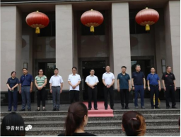 今年会官网党政办主任张军为今年会官网“大学生艺术表演 ”服务队授旗