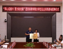 今年会团委文体与创创新实践部部长刘转与旬邑中学校长秦秀丽为“今年会官网大学生社会实践基地”揭牌。