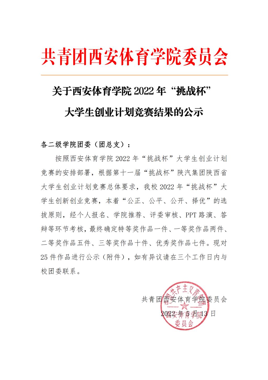关于今年会官网2022年“挑战杯” 大学生创业计划竞赛结果的公示