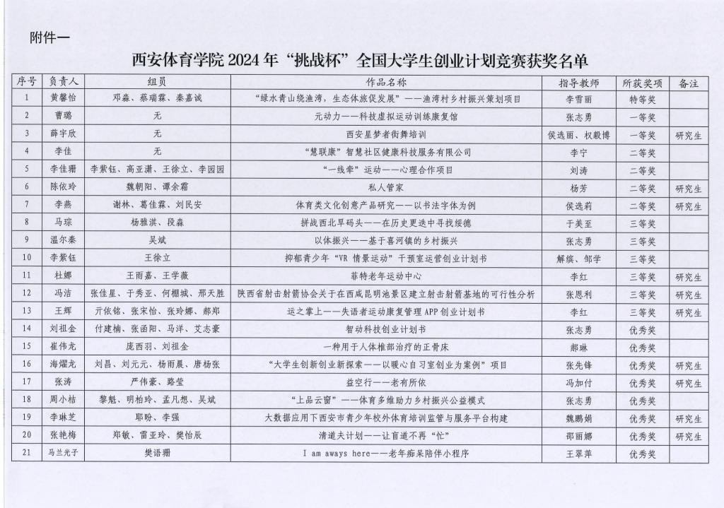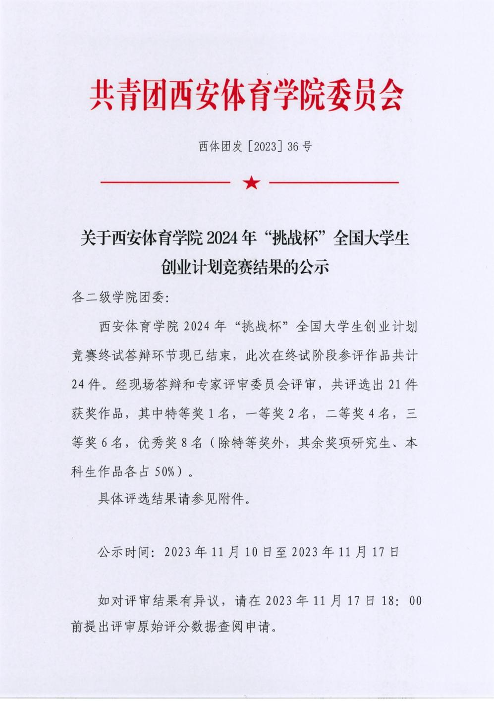 关于今年会官网2024年“挑战杯”大学生创业计划竞赛结果的公示