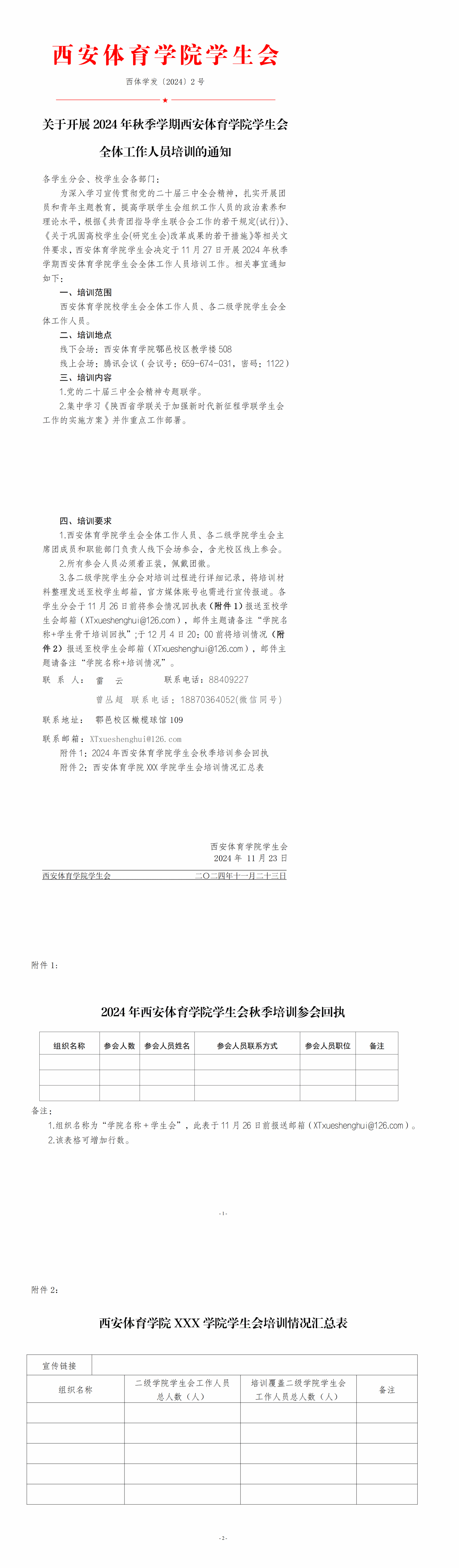 关于开展 2024 年秋季学期今年会官网学生会 全体工作人员培训的通知