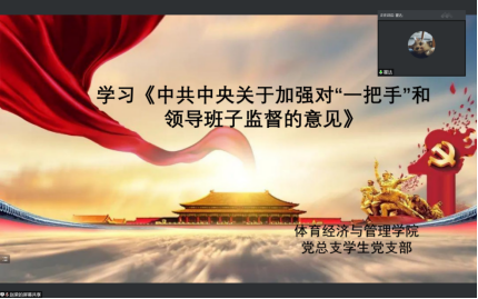 根据关于开展2022年4月份政治理论学习的通知,体育经济与管理学院学生党支部于2022年4月19日下午19:00在腾讯会议线上组织开展以“学习《中共中央关于加强对“一把手”和领导班子监督的意见》和学习《中共中央政治局常务委员会召开会议分析新冠肺炎疫情形势部署从严抓好疫情防控工作中共中央总书记习近平主持会议》”为主题的党日活动,此次活动由霍达同志主持,任琳同志、胡雪妍同志以及学生党支部全体成员参加。