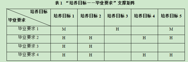 3.2 毕业要求对培养目标的支撑矩阵(表1)