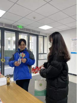 体育经济与管理学院的同学们精心准备了一些精致的小红花,“同学你好,送你一朵小红花,祝你新年快乐!。”一句简单的问候和一朵漂亮的小红花让他们感受到经管学院的热情和友爱,也让他们过一个温暖祥和的新年。