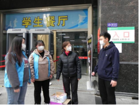 为激励凝聚广大团员、青年积极投身新冠疫情防控工作,2022年1月3日下午,体育经济与管理学院副院长党挺、团委书记任琳、辅导员任林林深入学生公寓、学校食堂看望慰问疫情防控一线的三十余名志愿者,为他们送去了方便面、水果等慰问品及口罩、消毒液等防疫物资。