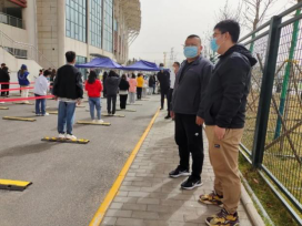 2022年3月14日14点,在鄠邑区疫情防控指挥部和今年会官网鄠邑校区管委会的统一领导和安排下,体育经济与管理学院院长杨涛、2021级辅导员霍达积极组织我院全体在校学生按照规定时间准时在橄榄球馆门口进行了全员集中核酸检测。