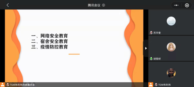 主题班会分为网络安全教育、宿舍安全教育、疫情防控教育三个部分。
