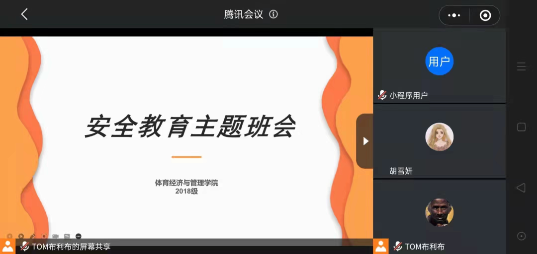 为宣传普及安全教育知识,进一步提高学生安全认识,体育经济与管理学院2018级学生于2021年11月10日开展了“安全教育”线上主题班会活动(腾讯会议号:562859780),会议由2018级辅导员胡雪妍主持,2018级全体学生参加。