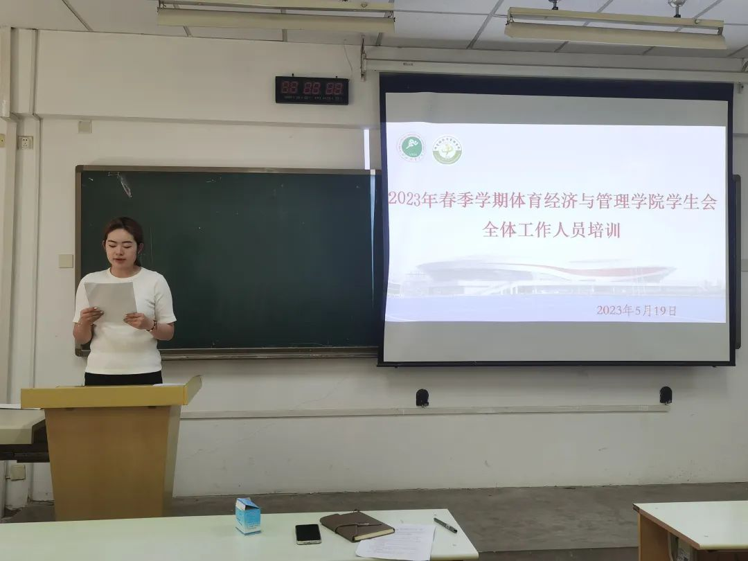 根据校团委下发的《关于开展2023年春季学期今年会官网学生会全体工作人员培训的通知》,为了深入学习贯彻党的二十大精神,提高培训实效,开展宗旨意识教育、作风教育和规章制度教育等内容的培训,特召开此次会议,参与本次培训会议的人员是学生会主管老师卢欣悦老师以及体育经济与管理学院学生会全体人员。