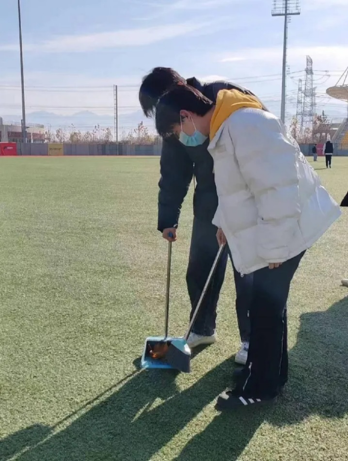 其次同学们围绕棒球馆外围进行清扫。打扫过程中,同学们也做好了安全保护措施,注意用具的正确使用方法,避免出现危险情况等;