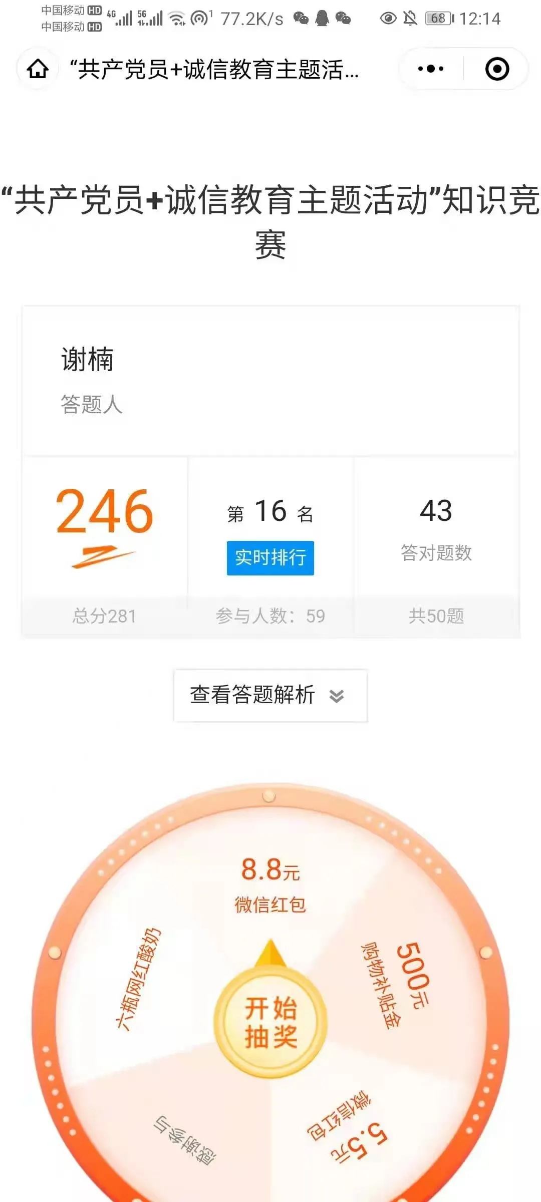 为不断加强体育经济与管理学院学生党支部党员的政治理论学习,进一步提高学习的针对性和实效性,根据上级党组织要求和校党委工作部署,6月17日体育经济与管理学院学生党支部在线上开展了“共产党员+诚信教育主题活动”知识竞答,活动对象为获得国家资助的在校本科学生,以共产党员为引领,以中共预备党员、入党积极分子为主体参加线上答题。