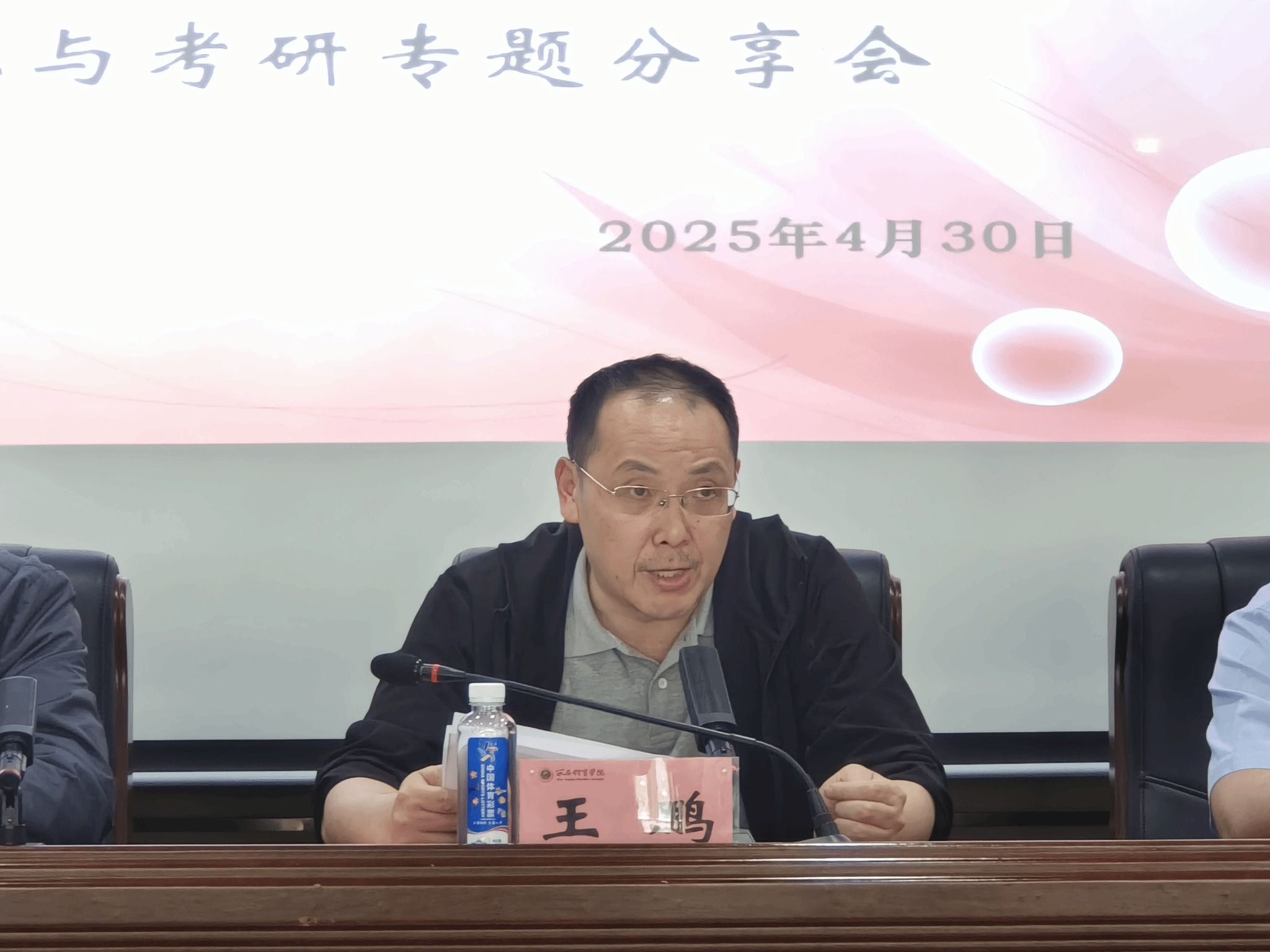 会议伊始,党总支书记陈鑫对学院上一届考研取得的优异成果给予了充分肯定,并详细介绍了会议议程,为分享会拉开了序幕。随后,院长王鹏发表了动员讲话,他深入分析了当前就业形势,鼓励同学们要充分结合自身优势,科学规划考研学习,明确目标、积极行动,在考研之路上奋勇拼搏。