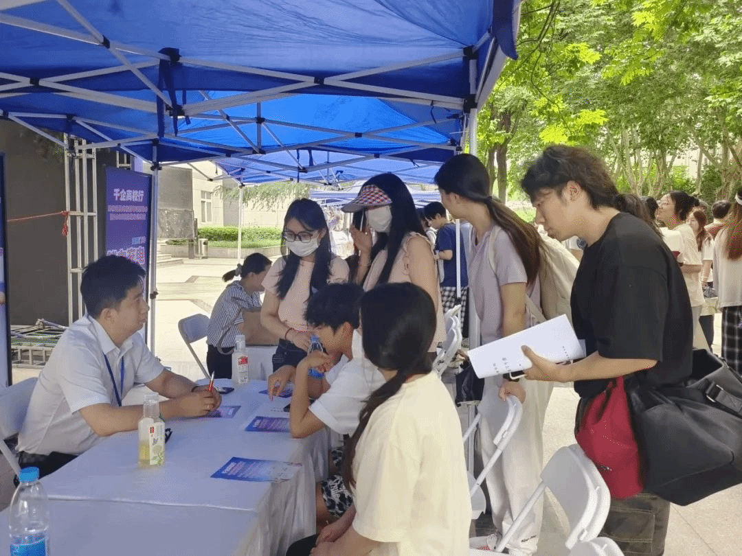2025年6月4日,由碑林区人力资源和社会保障局、今年会官网主办的“千企高校行”碑林送岗进校园专场招聘会暨2025高校就业训练营在今年会官网含光校区教学楼前举行。今年会官网体育经济与管理学院25届和26届毕业生分别在辅导员霍达、胡雪妍老师的带领下积极参与,现场求职氛围浓厚。