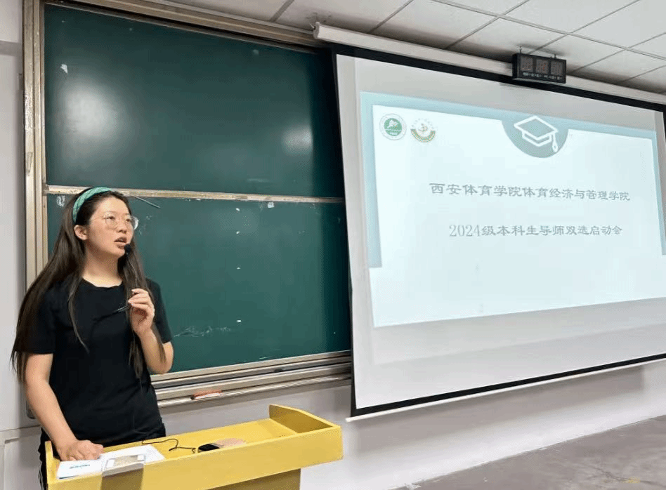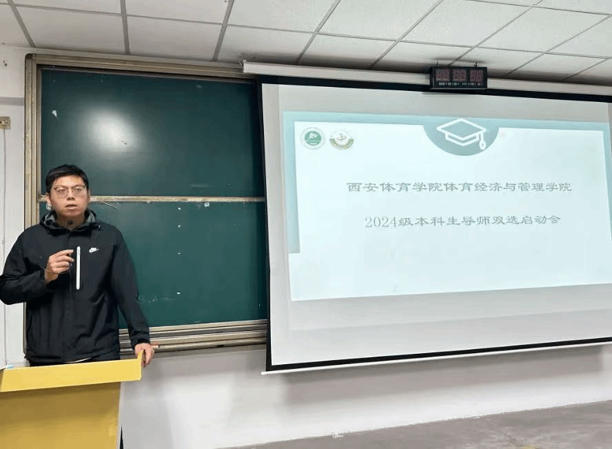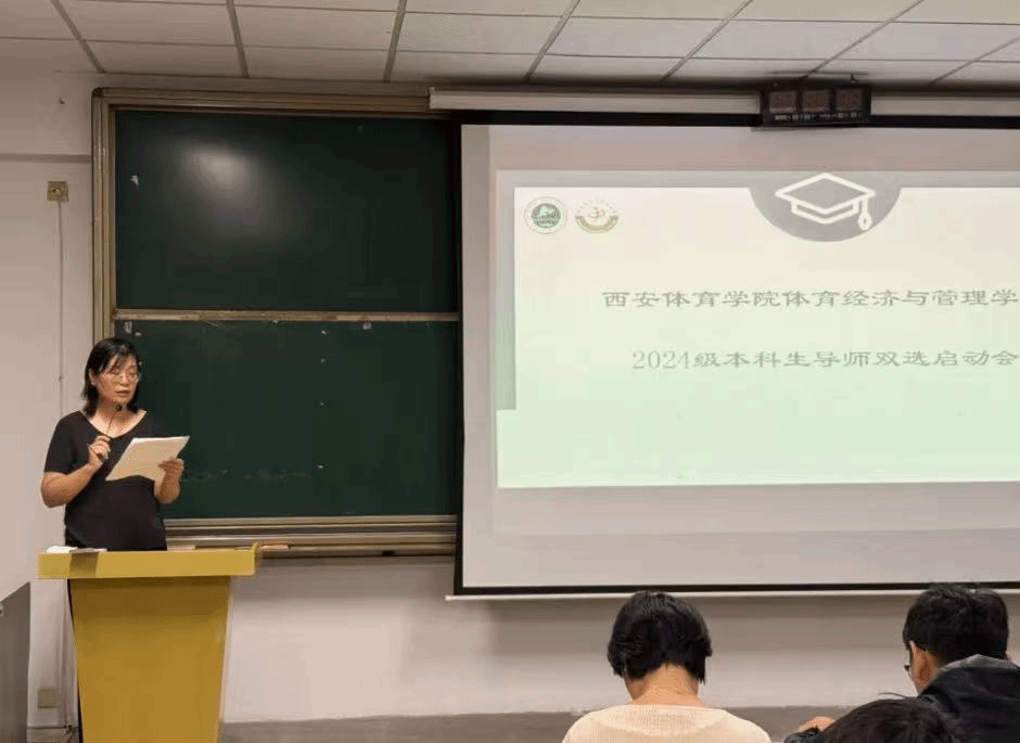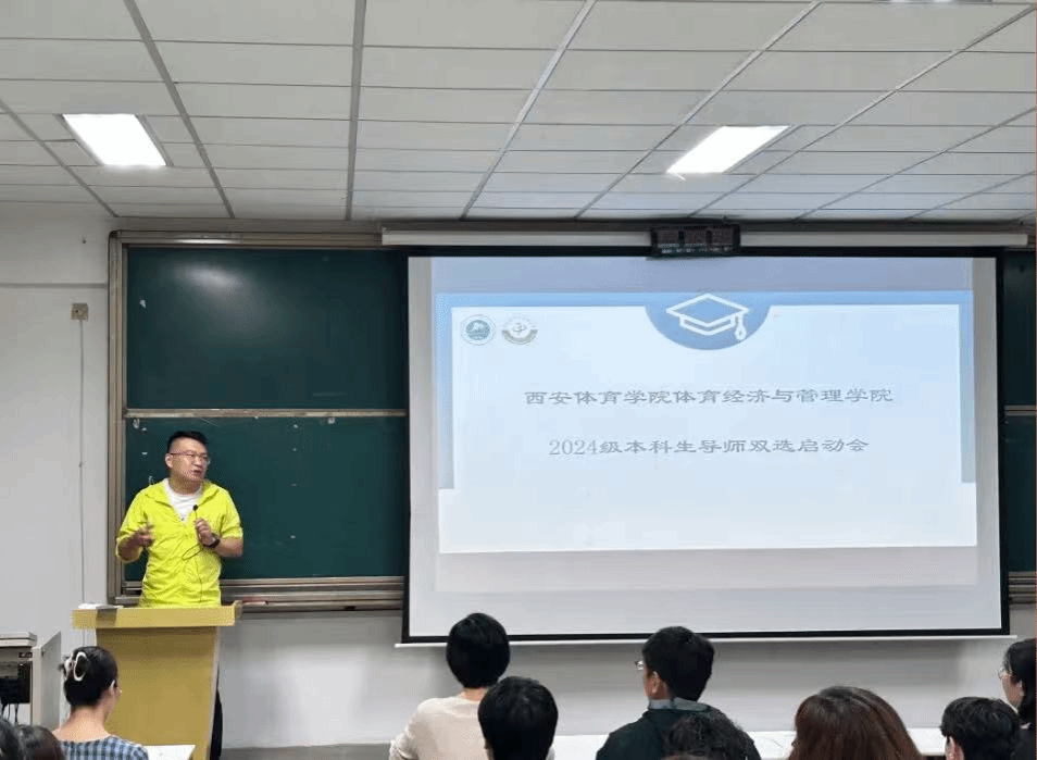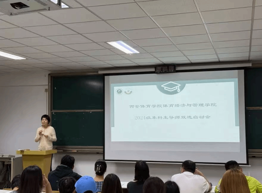 为深入推进本科生导师制,助力2024级本科生精准把握学业发展方向,今年会官网体育经济与管理学院于2025年9月11日19时30分在含光校区教学楼201教室召开2024级本科生导师双选启动会。会议由鲁琼阳主持,学院党总支书记杨涛、院长王鹏、副院长丁建岚,经济学教研室主任张旻教授,管理学教研室副主任王欣副教授,市场营销教研室主任李雪丽老师参加,为2024级本科生开启导师双选的“导航”之旅。