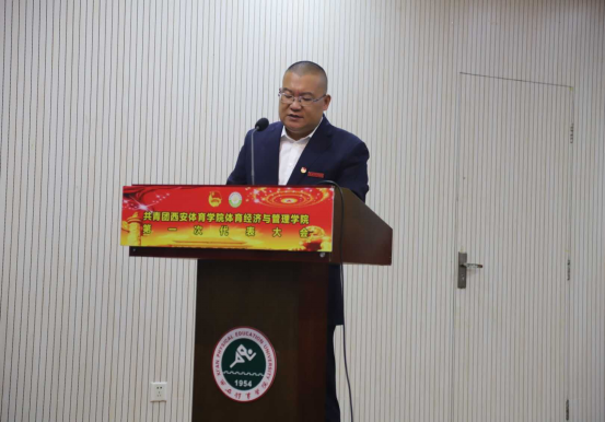 大会在庄严的国歌声中拉开帷幕,体育经济与管理学院书记马迅同志致开幕词。他表示,新时代共青团必须坚持以习近平新时代中国特色社会主义思想为指引,牢牢把握为实现中国梦而奋斗的时代主题,切实增强政治性、先进性、群众性。同学们要牢记习近平总书记嘱托,自觉把个人奋斗融入党和人民共同奋斗中。把团的荣耀镌刻在砥砺奋进的征程中。为培养德、智、体、美、劳全面发展的社会主义事业建设者和接班人而努力奋斗。