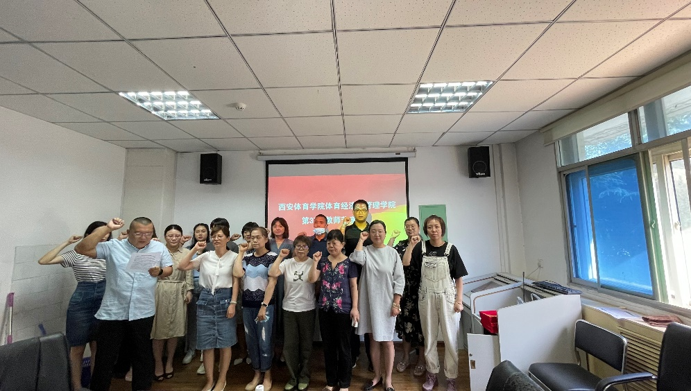 座谈会第二项,教师宣誓。杨院长带领全院教师集体学习《新时代教师职业行为十项准则》《教师职业道德规范》并宣誓,宣誓时全体教师起立。