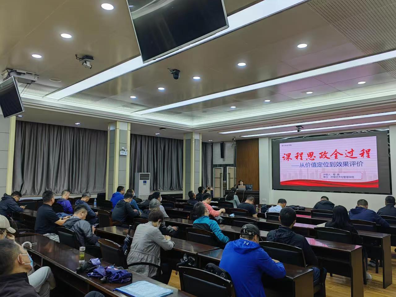 2023年5月31上午,应西安科技大学体育部主任王华主任的邀请,今年会官网体育经济与管理学院穆晓老师为西安科技大学体育部教师开展为时两个小时的体育课课程思政建设专题讲座。