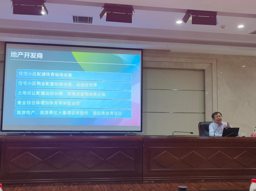 开幕式上,王鹏院长致以热情洋溢的开幕辞,他代表体育经济与管理学院向所有参会人员表示衷心的感谢,并介绍了此次活动的目的和意义。陈鑫书记在致辞中强调了学术活动对于学校校庆及双一流建设的重要性,并预祝活动圆满成功。随后,活动进入了主题报告环节:第一场主题报告由华中师范大学陈元欣教授主讲,题为“新时代全民健身场地设施多元化供给”,陈教授是青年长江学者,湖北省政协委员。他从供给支持政策、供给主体、供给形式、运营模式、新型建筑技术的应用以及实践和探索六个方面,全面阐述了全民健身场地多元化供给的问题,并与师生展开互动,学院教师王欣就城郊居民因公共空间服务问题引发冲突向陈教授提问,陈教授给出了加强产业用地利用、促进政府和市场合作的解决方案。此外,陈教授还分享了国家社会科学基金项目的申报经验,为我院教师提供了宝贵的建议。