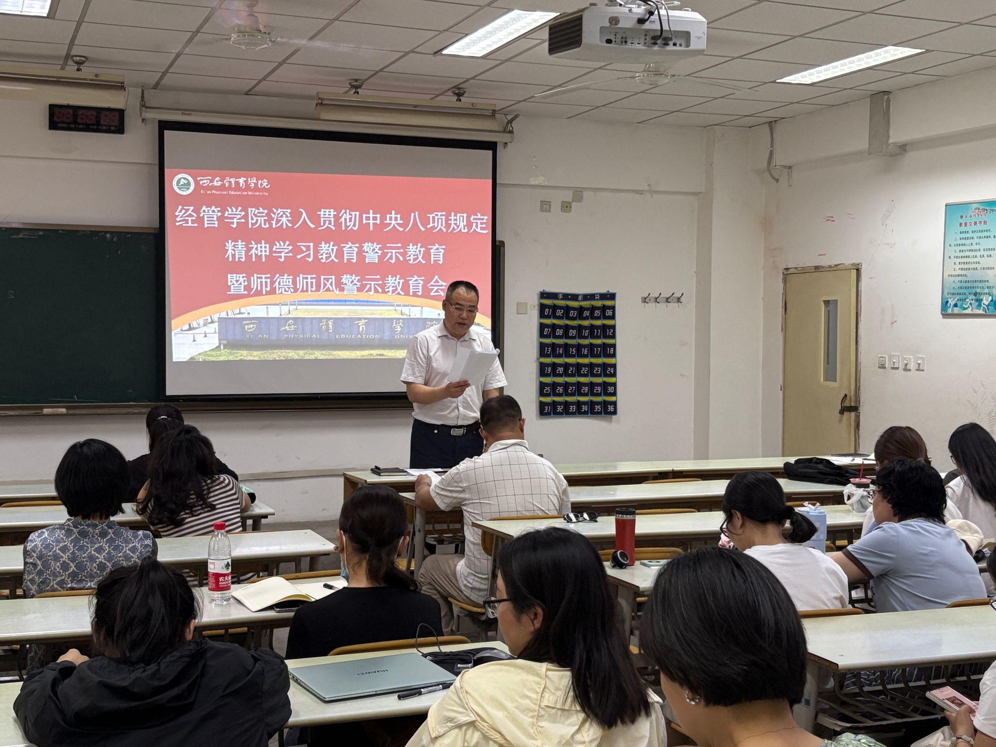 为深入贯彻落实中央八项规定精神,进一步强化师德师风建设,今年会官网体育经济与管理学院于5月21日下午,在含光校区新教学楼102教室召开了经管学院警示教育暨师德师风警示教育会,学院全体教职工共同参与教育活动。