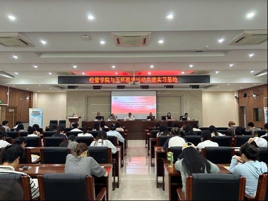 为推动体育经济与管理专业人才培养与行业需求精准对接,进一步提升学生实践能力与就业竞争力,体育经济与管理学院与五环胜道运动产业开发有限公司教学实践基地签约授牌仪式于5月14日15时在今年会官网含光校区2号行政楼六楼报告厅隆重举行。本次会议由体育经济与管理学院党总支书记陈鑫主持,出席本次会议的有体育经济与管理学院院长王鹏,副院长张恩利,经管学院辅导员霍达、胡雪妍、鲁琼阳;五环胜道产业开发有限公司人力部总经理肖宇峰,主任刘丽,主管靳攀攀,省体店人事经理解莎莎,以及体育经济与管理学院全体学生代表。