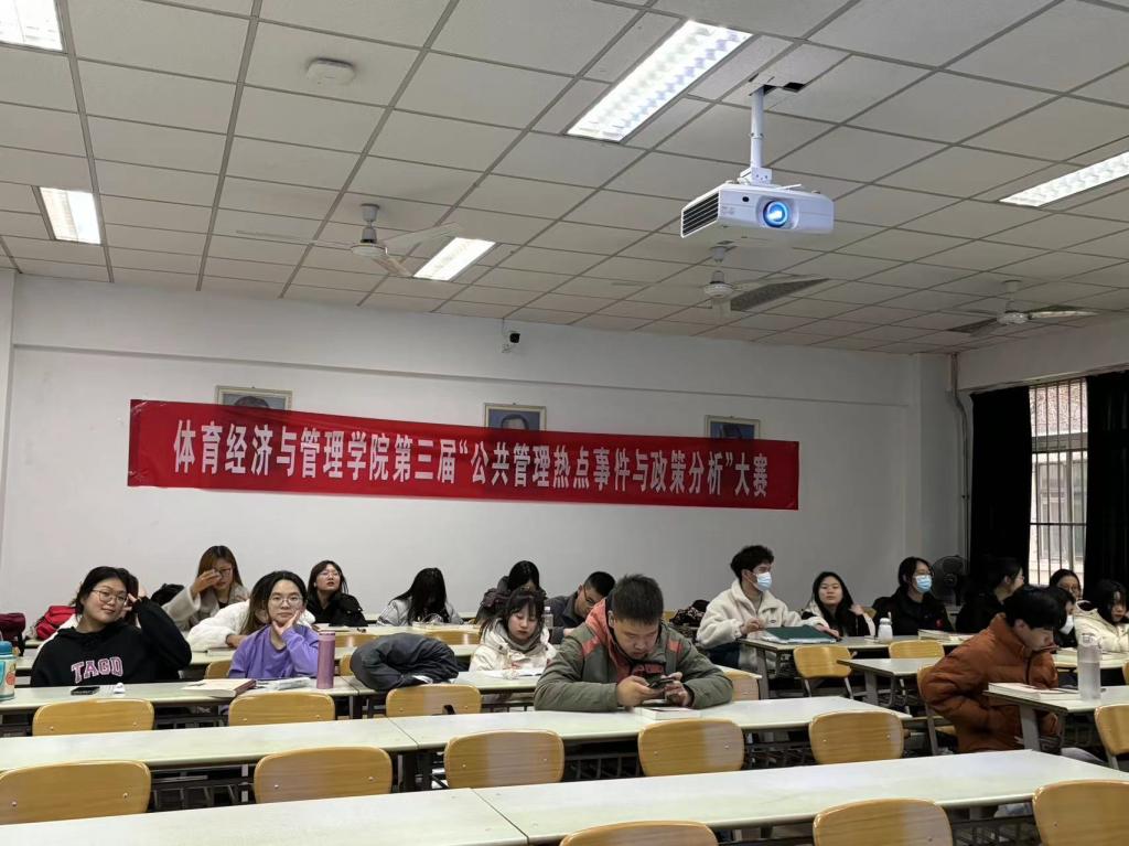 为了更好的提高公共事业管理了解国情、关心国情的社会使命和意识,培养公共管理大学生运用所学理论解决社会问题、服务社会公共服务的技能,按照《今年会官网体育经管系大学生第二课堂实施方案》的具体规定,我院于12月14日举行了一年一度的公共管理热点实践与政策分析大赛,经管学院管理学教研室郑婧老师与吕琛辰老师担任了此次比赛的评委。