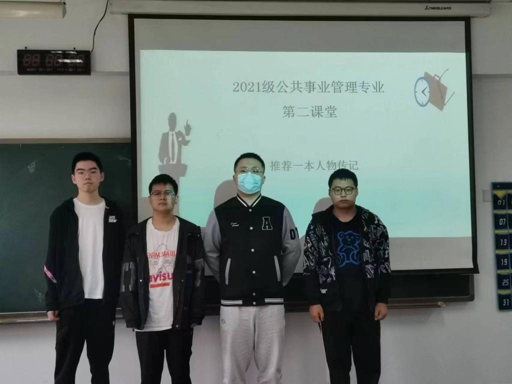 第二课堂活动,是教学的重要组成部分,以结合课堂知识相,提高学生的综合素质和实践能力为目的。本学期围绕《领导科学》这门课的教学目标及教学内容,重点学习了领导活动的本质、领导活动的主体、领导活动的结构、领导活动的过程。为了帮助学生更好的感悟领导艺术、领导者影响力、领导者个人魅力等内容学期初安排了小组共读计划,每组选一本领导者的人物传记进行阅读并交流感想。