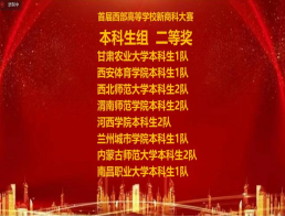 2023年4月8日,首届西部高等学校新商科大赛在兰州大学以线上形式举办。本届大赛由西部新商科实践教学创新与共享联盟主办,兰州大学承办,教育部工商管理教育指导委员会指导,广州市福思特科技有限公司提供技术支持,甘肃省高等学校管理类本科专业教学指导、认证与教材建设委员会协办。第二届西部高等学校新商科大赛将于2024年由西南石油大学经济管理学院承办。