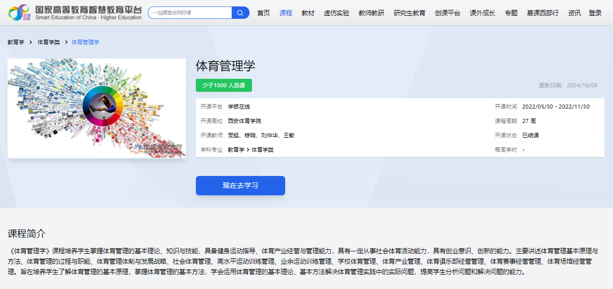 欢迎广大师生访问国家高等教育智慧教育平台,共同领略《体育管理学》课程的魅力!