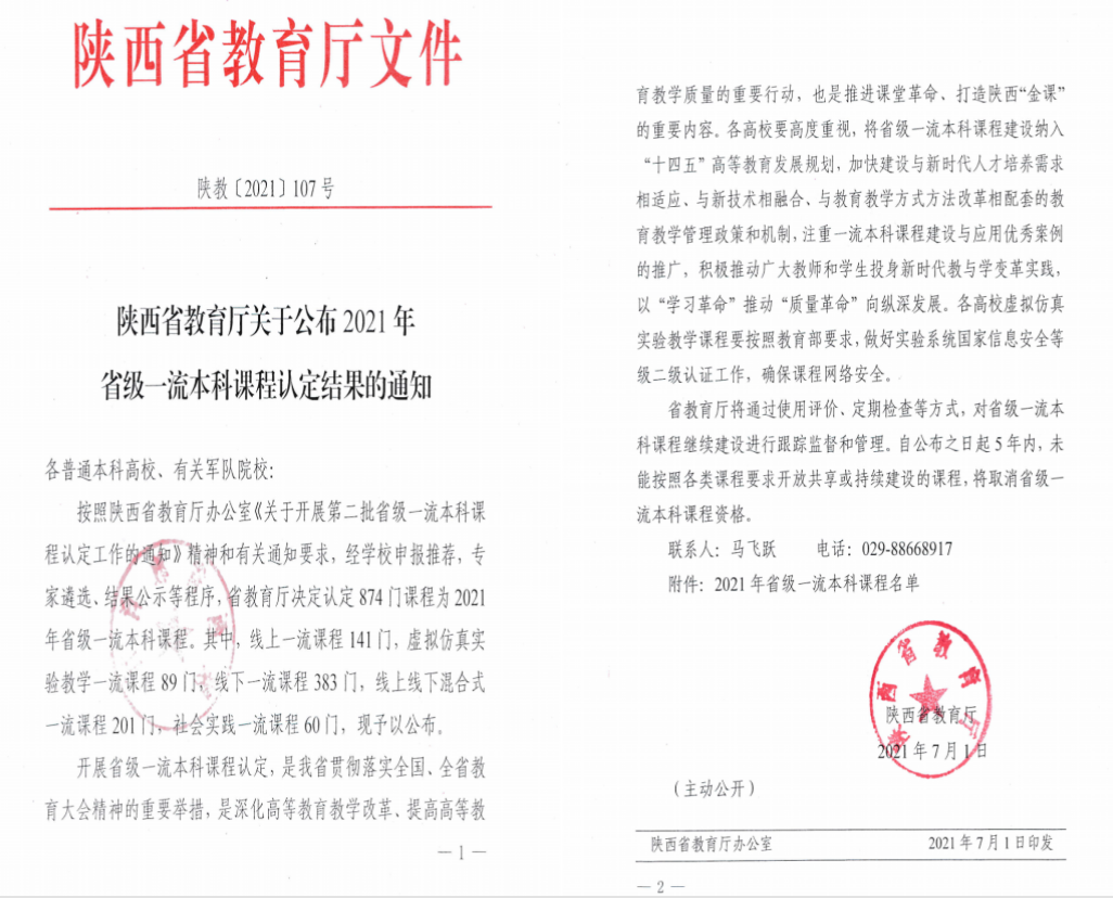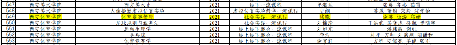 2021年7月,2021年省级一流本科课程认定结果揭晓,我院穆晓老师主持的《体育赛事管理》课程荣获省级社会实践一流课程认定。