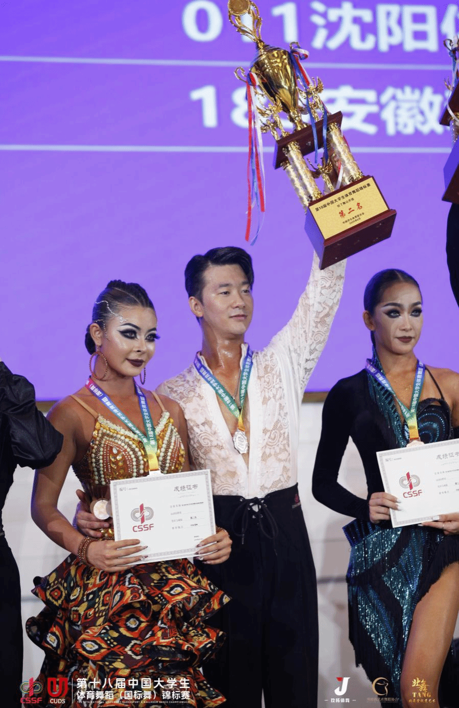 教师刘伟校、方鑫、张璐分别获得优秀裁判员、优秀教练员、道德风尚教练员荣誉称号。王雨涵、王泽宇、王冠博、郭治宇4位同学获道德风尚运动员荣誉称号。充分展示了学校在体育舞蹈领域的雄厚实力和人才培养成果。