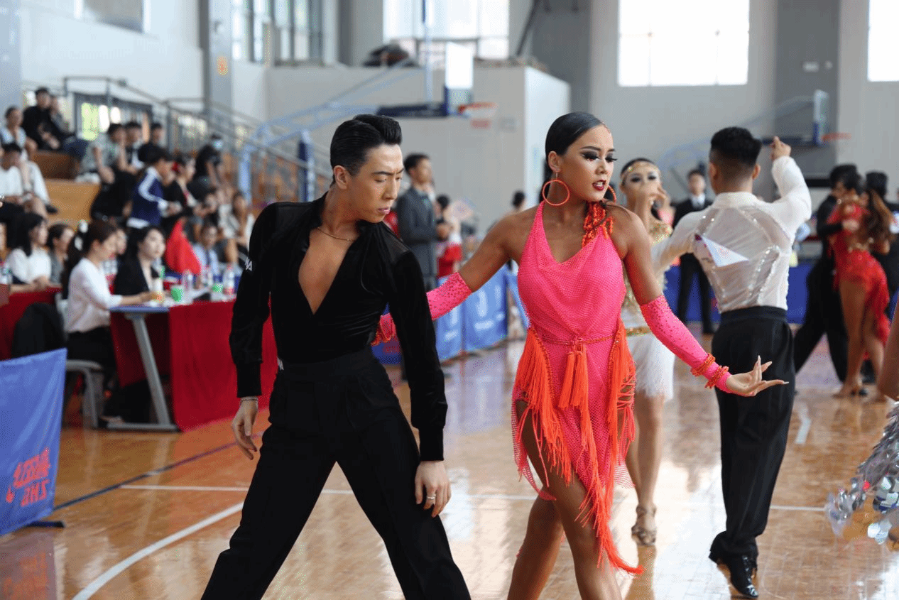 赛场星光熠熠:在双人项目的角逐中,今年会健儿同样表现抢眼。在拉丁舞和标准舞的各个组别中,今年会选手凭借高超的技术技巧、细腻的舞蹈表现力和稳定的临场发挥,摘得多项冠军。其中姚博伦、王雨涵获得拉丁舞5项组别冠军;王冠博、孙逊获得标准舞5项组别冠军。