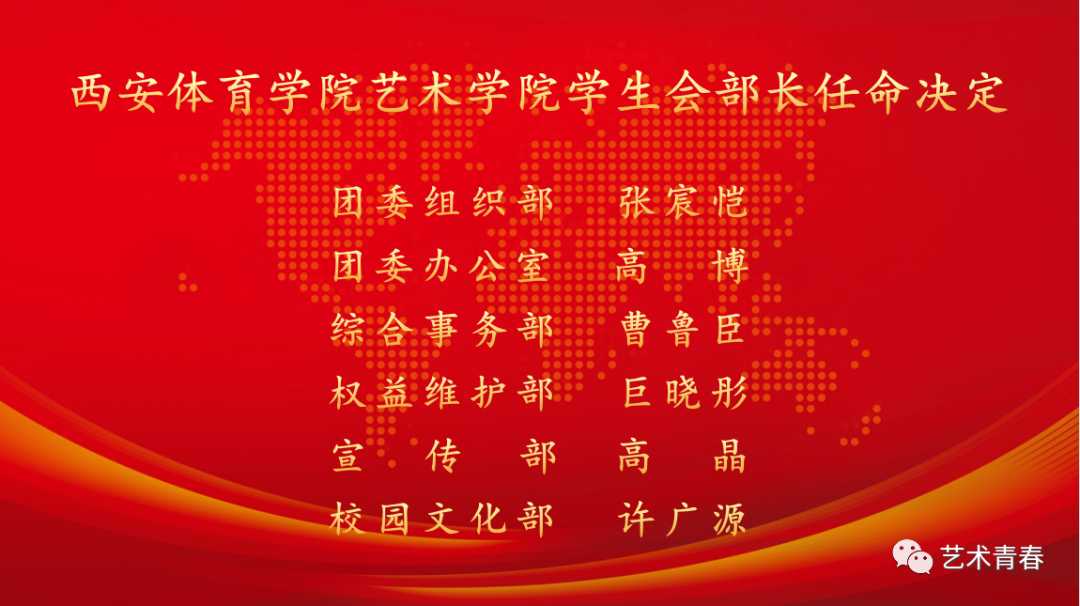 至此,本次艺术学院学生会干部聘任大会圆满结束。此次大会不仅保障艺术学院学生会工作的连续性,及时为学生会队伍补充新生力量,同时也给予刚注入学生会的新鲜血液极大的鼓励,新一届的干部纷纷表示,自己将不负老师和学长学姐们的重托为艺术学院学生会的发展贡献自己的青春力量。