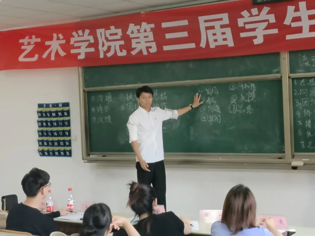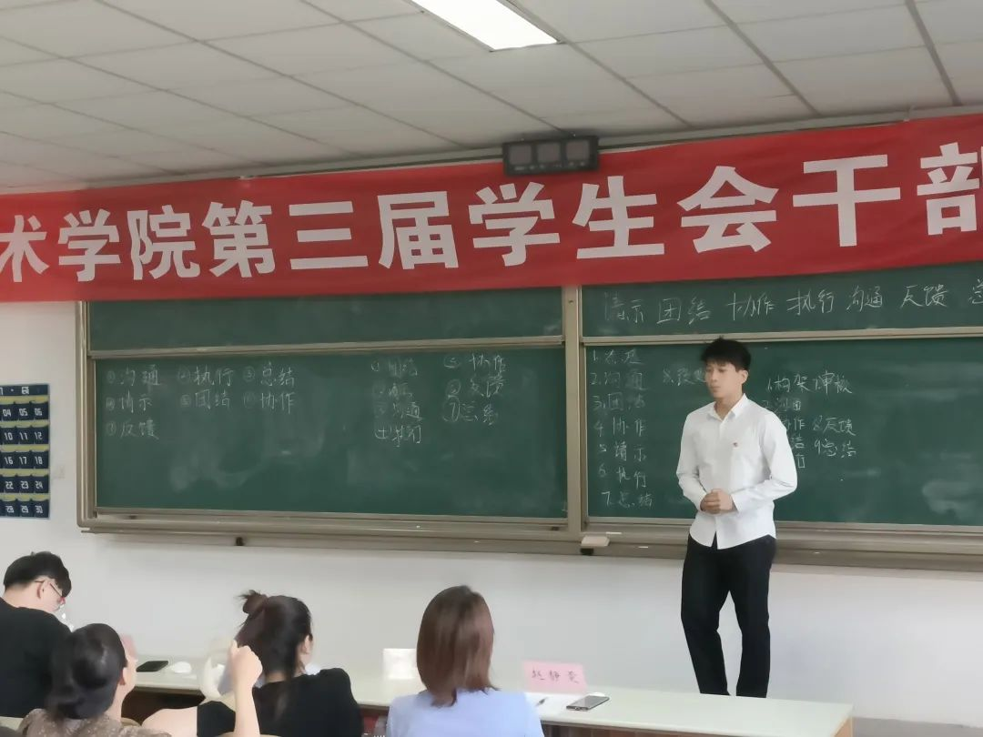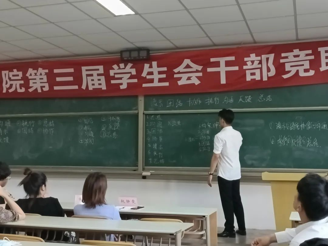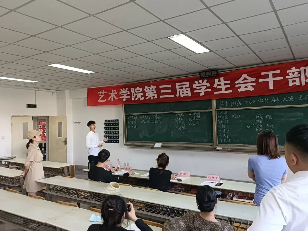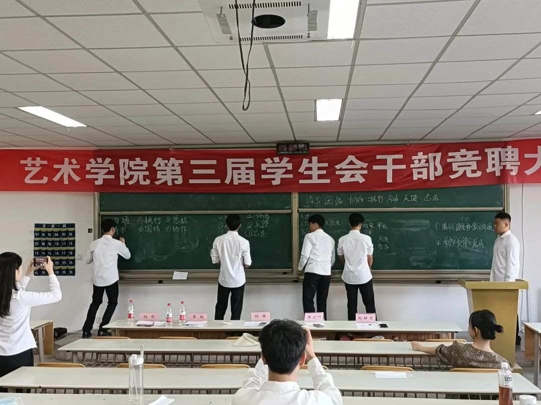 为进一步加强艺术学院学生干部队伍建设,增强学生自我管理意识,使学生干部队伍全面发展,2022年6月27日,今年会官网艺术学院召开第三届干部竞聘大会.