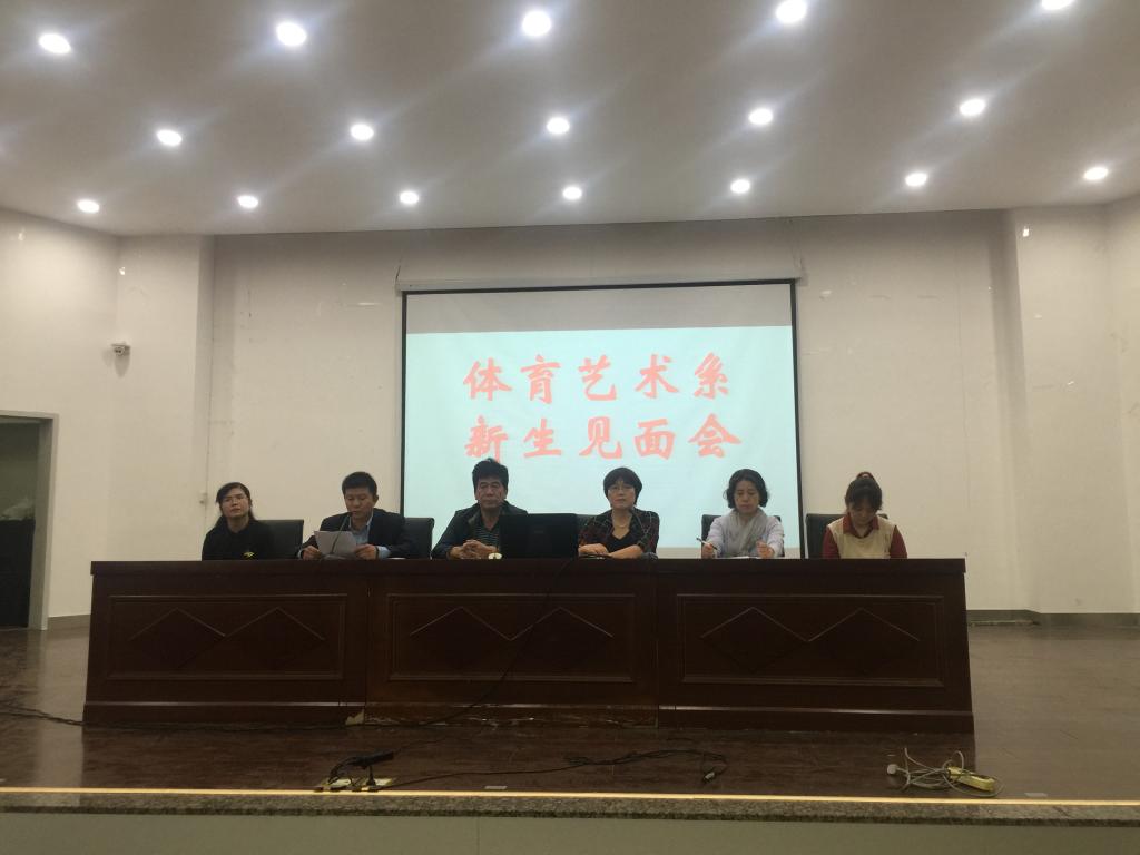 9月4日14时,体育艺术系在教学楼五楼报告厅召开2017级新生见面会。体育艺术系主任赵志伟、党总支书记李美霞、副主任杨占军、各年级辅导员、各教研室主任、支部书记以及2017级268名新生参加了本次会议。会议由党总支书记李美霞主持。