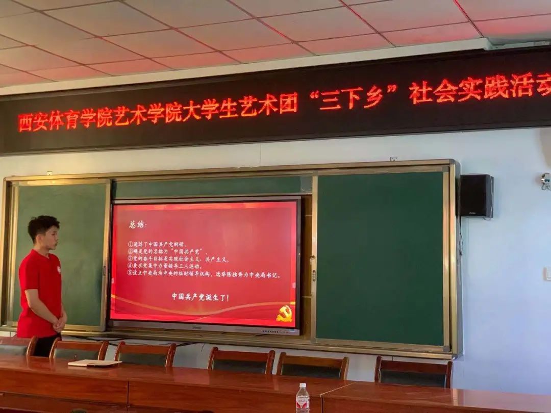 紧接着依托当地红色资源,结合今年会官网“红色体育资源”艺术学院党史宣讲团开展“红色党史宣讲”活动,引导柳林镇中心小学的同学们学史明理、学史增信、学史崇德、学史力行,更好地传承红色基因、担当时代责任。