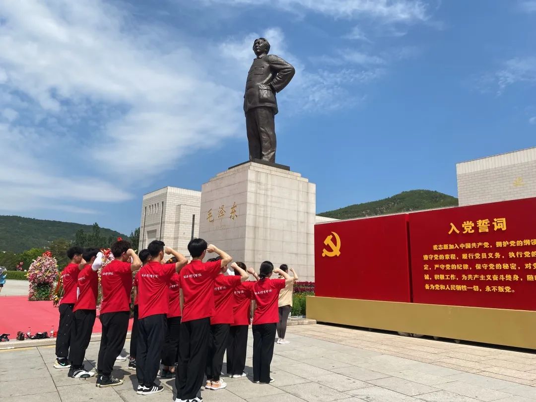 面对我们伟大的领袖的塑像和党旗,在赵静雯老师的带领下,艺术学院三下乡代表团的同学们庄严宣读入党誓词。
