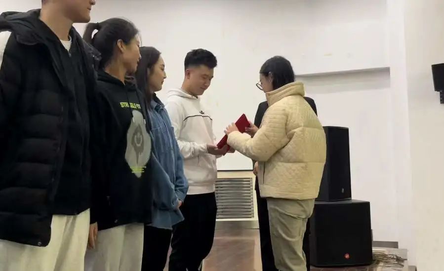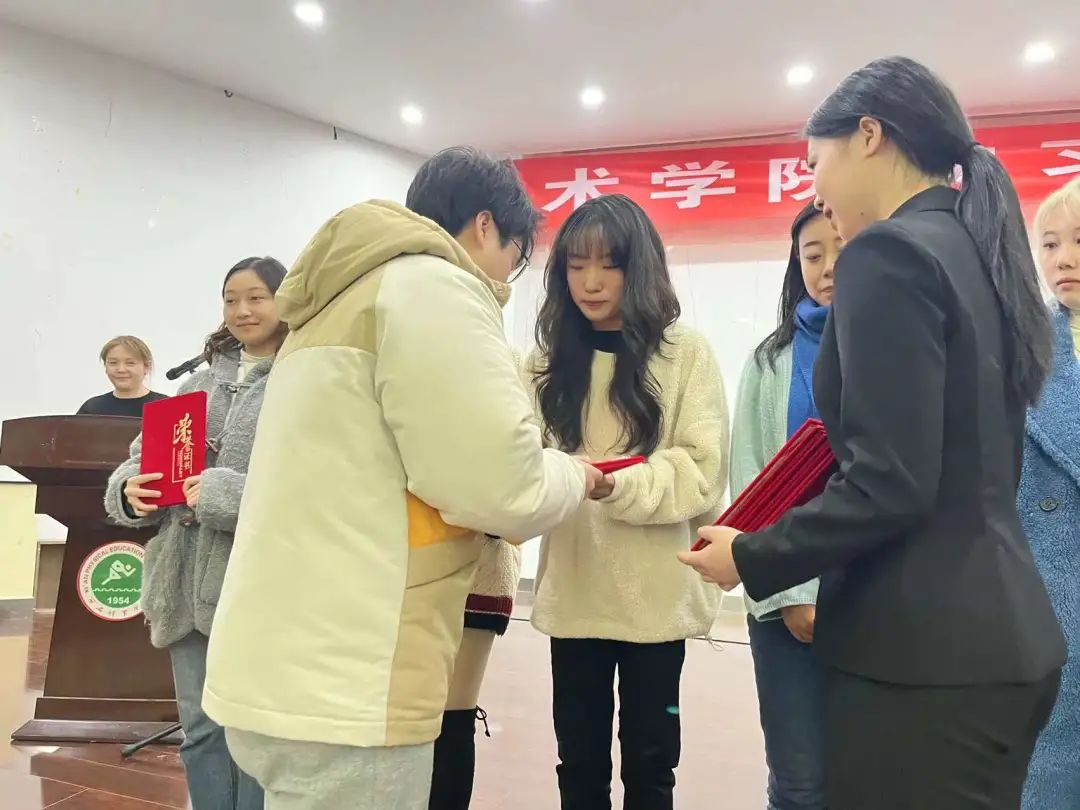 艺术学院党政办公室主任宋姌,艺术学院学工办主任、团委副书记刘薇为优秀实习生颁奖