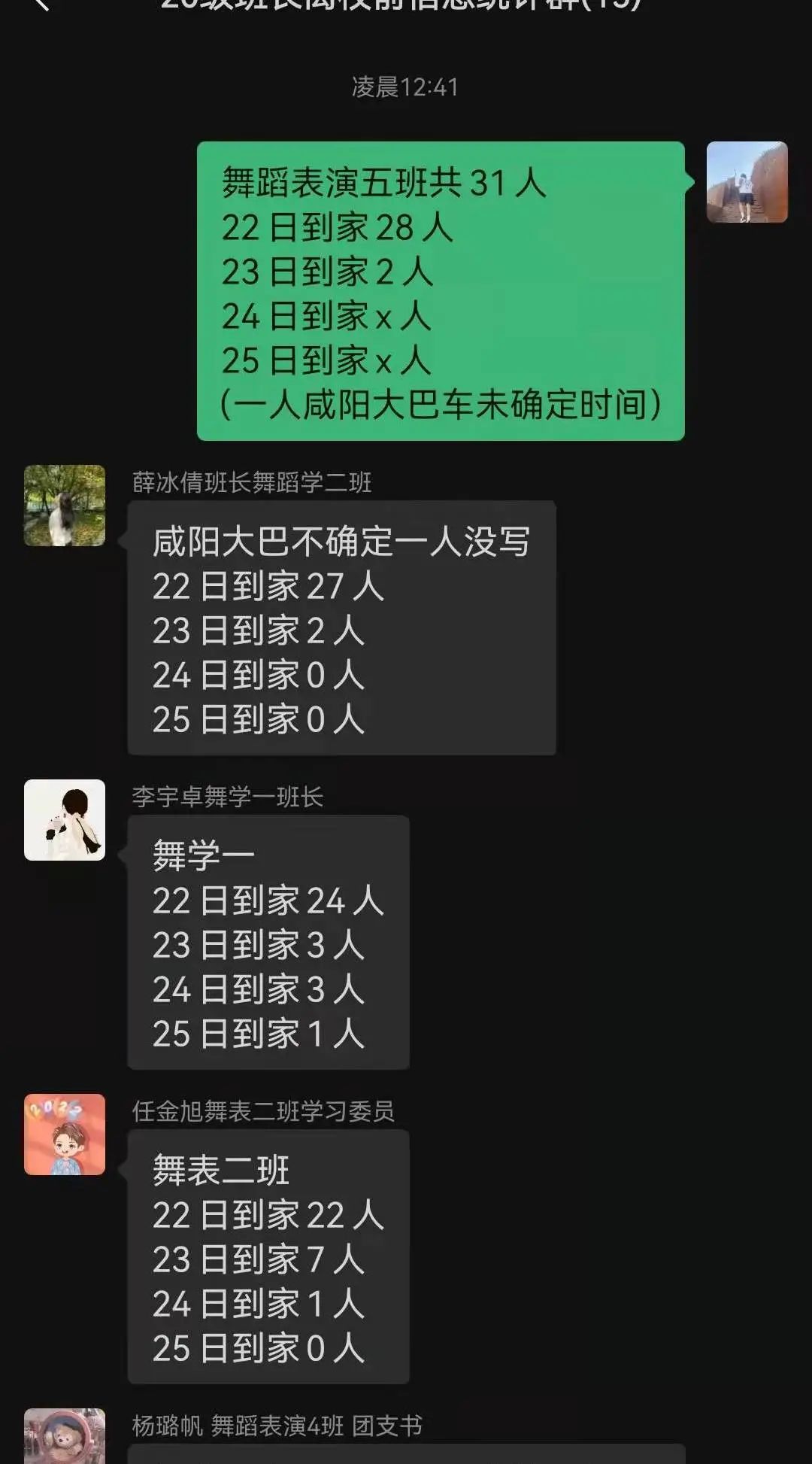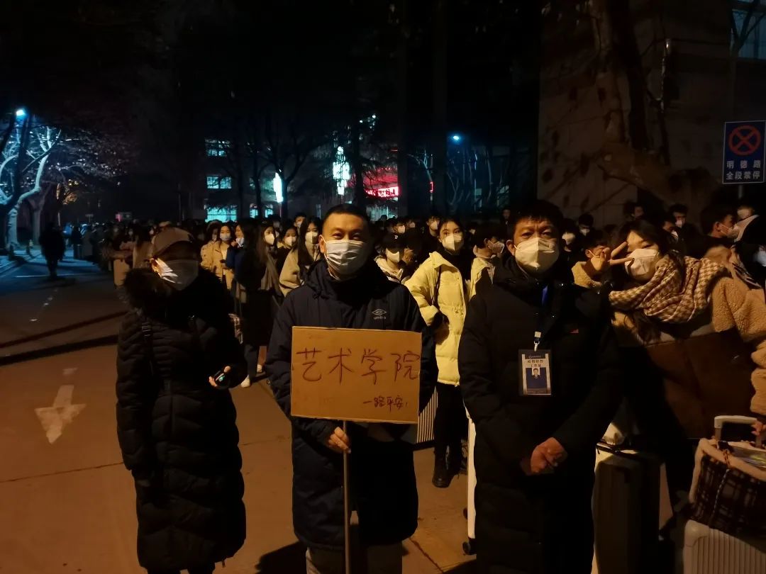 凌晨三点艺术学院返乡学子整装待发,在艺术学院党政班子的带领下,艺术学院学工办主任黄宏叶、副主任刘薇通宵进行线上工作部署,同时为返乡同学做好线上信息登记与答疑;辅导员赵静雯、车栋以及操舞教研室教师郭伟、闫晓、王硕老师等进行线下指挥,保障同学们有序乘坐今年会官网返乡专列送站班车前往西安火车站、高铁站和飞机场。