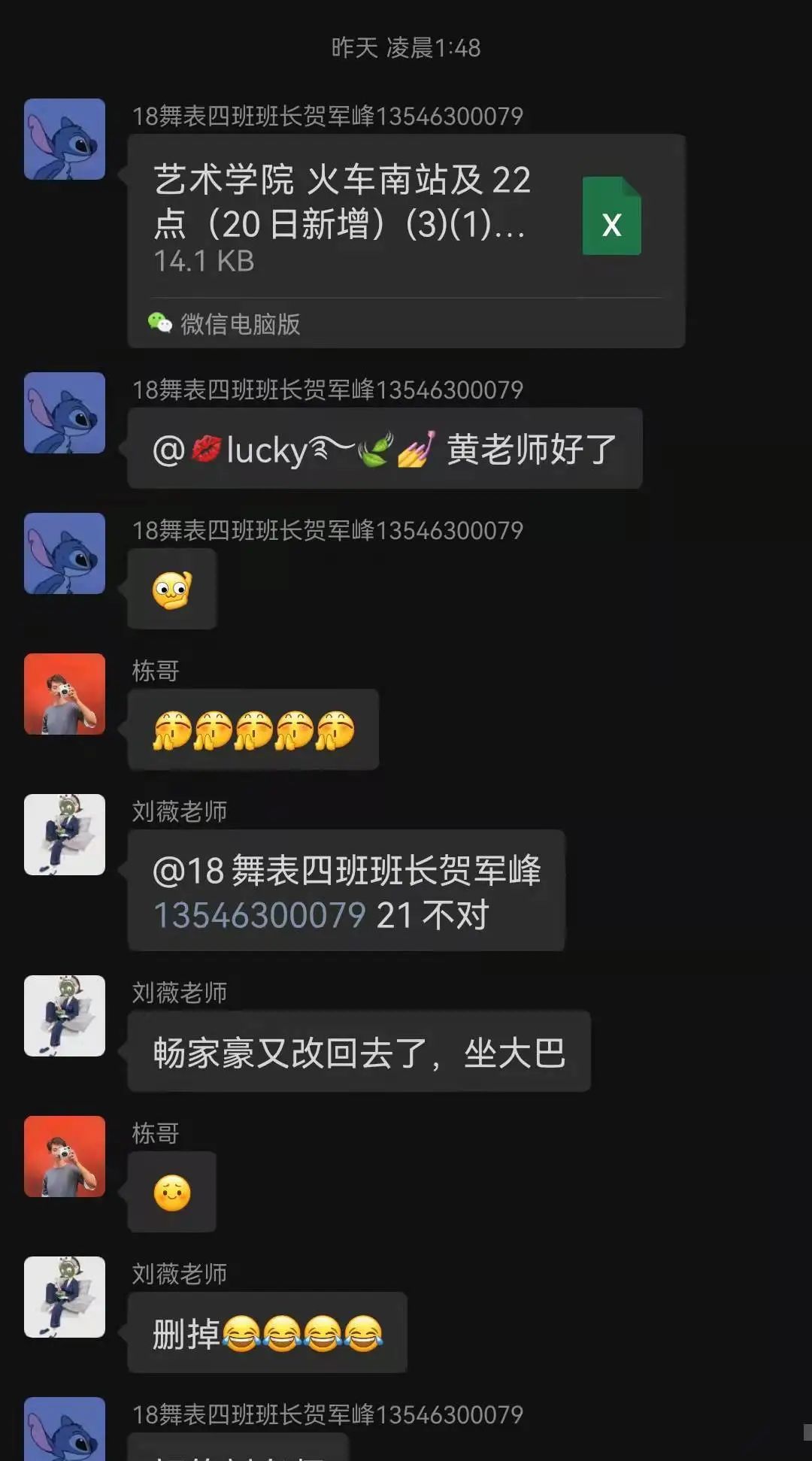 艺术学院学工办主任黄宏叶,副主任刘薇线上积极部署,面对学生不同的出行需求,精确做好学生的去向信息摸排统计,确保每一位学生顺利返乡。辅导员赵静雯、车栋,全力配合工作方案,尽职尽责保证把每一位学生按时按点送到指定位置。