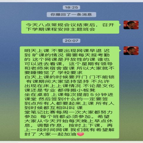 2.要求所有宿舍上课期间都把门打开,会有领导进行查课。