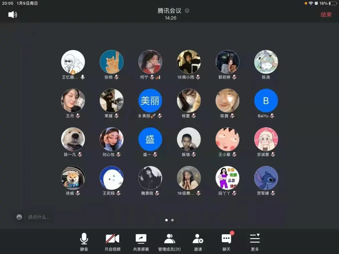 1.各班班长在腾讯会议召开关于新学期新课程安排与注意事项的班会。