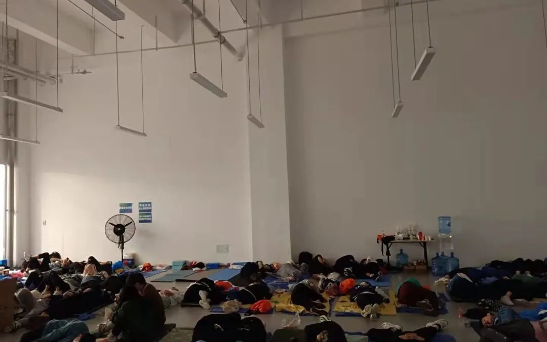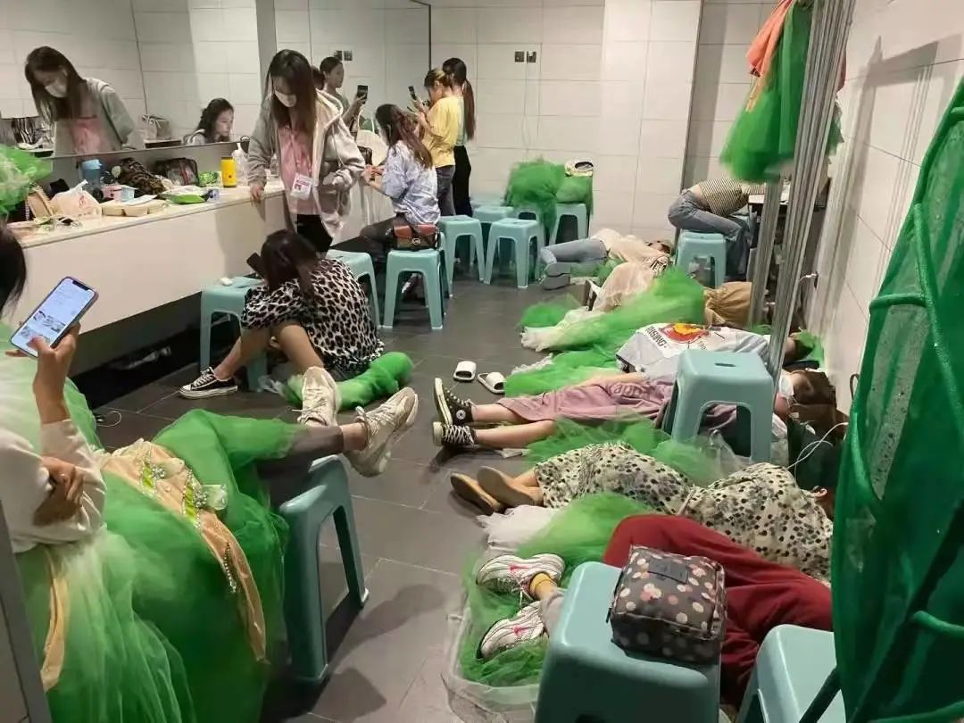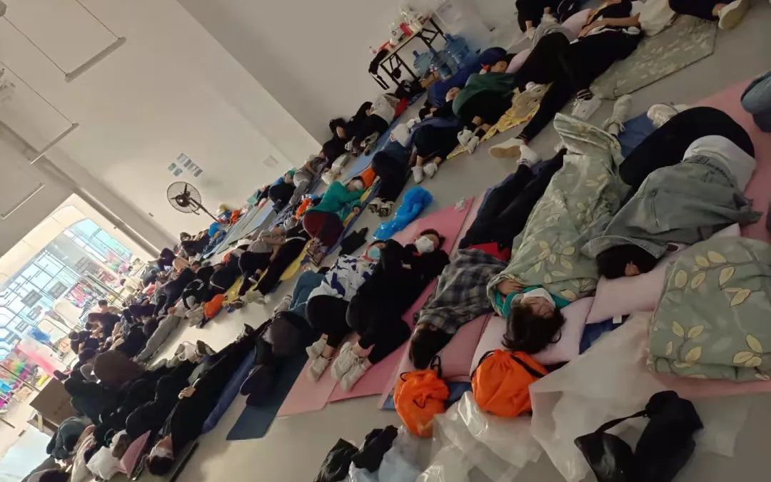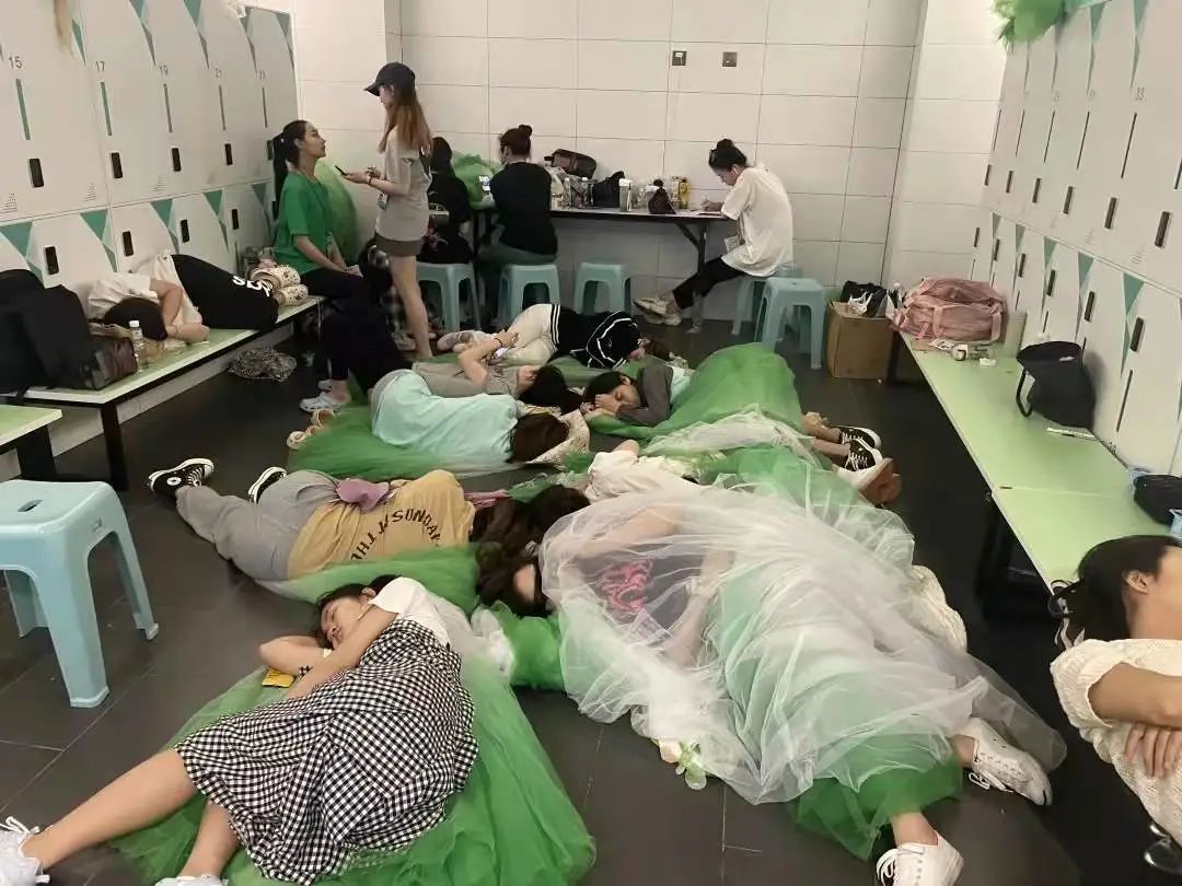 凌晨两点,排练间歇师生席地而睡等待下一次联排