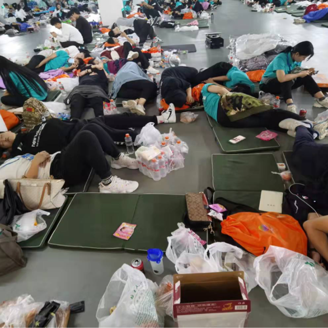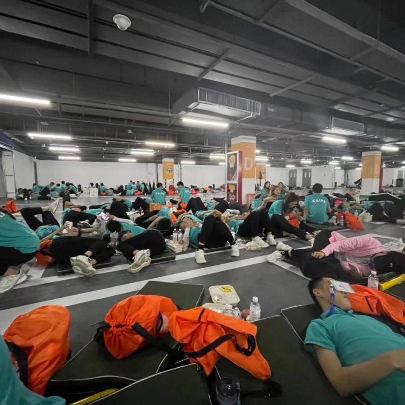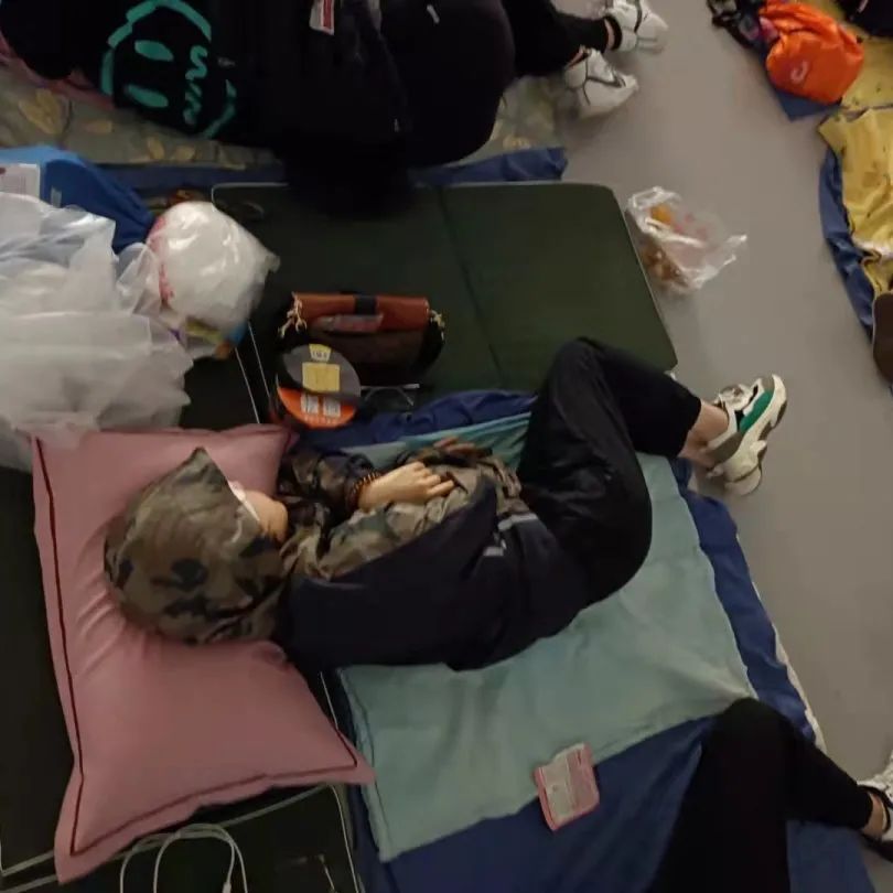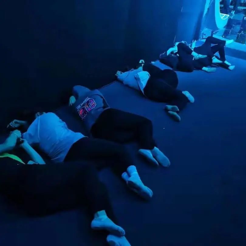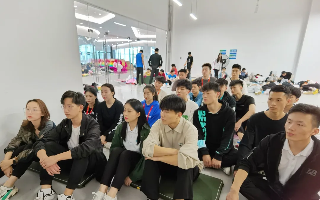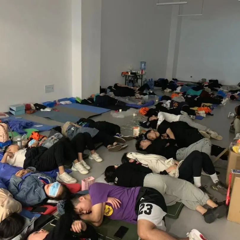 凌晨两点,排练间歇师生席地而睡等待下一次联排
