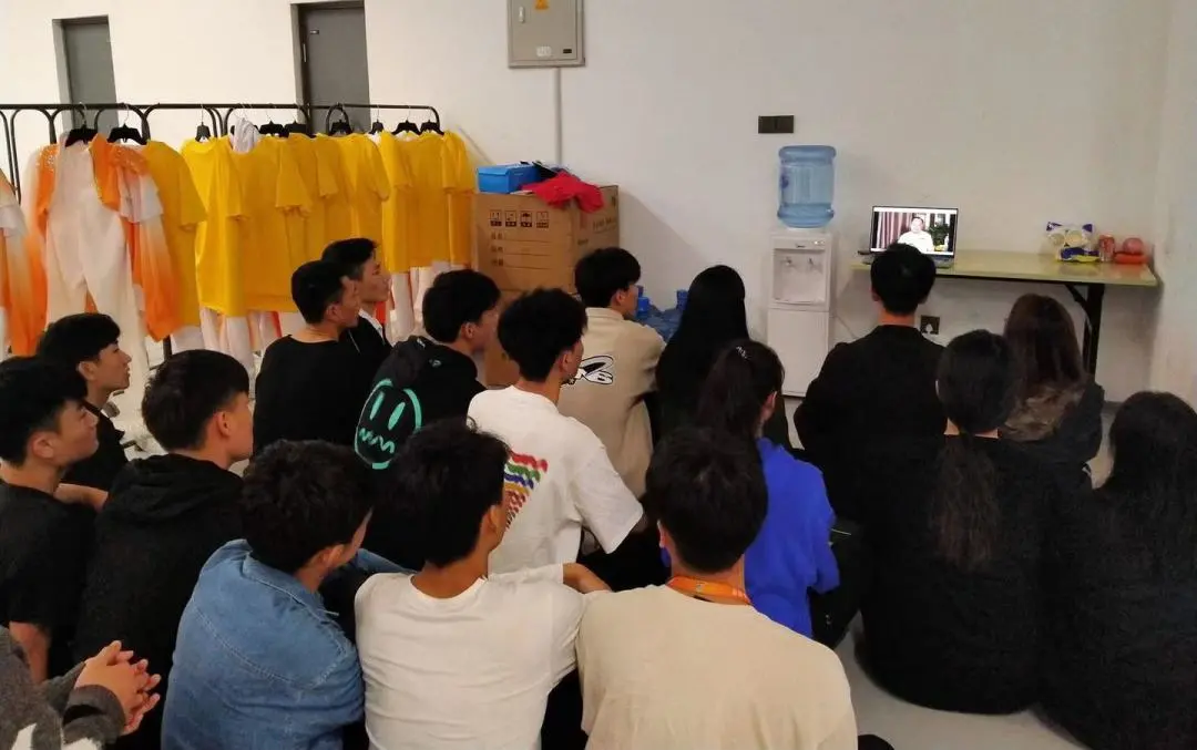 在辛苦劳累的排练中,我们的带队老师和学生干部、党员积极分子在艰苦的条件下依旧坐在一起认真学习思政大课,磨炼意志,加强思想。路遥有言:“我们每个人的生活都是一个世界,但我们需要为之努力,让它不枉此生。”或平凡,或夺目的我们,应将台前幕后的生活结合起来,使自己的世界充满精彩。