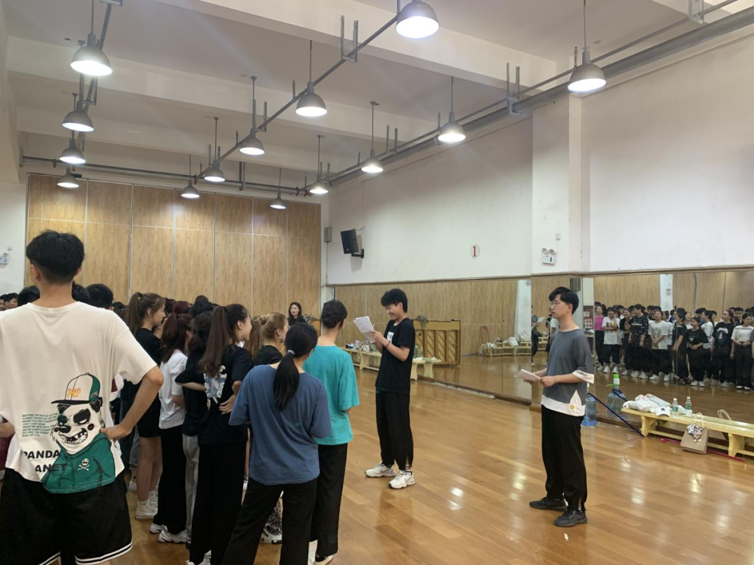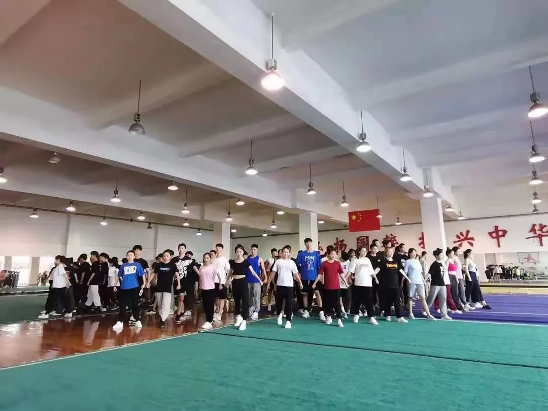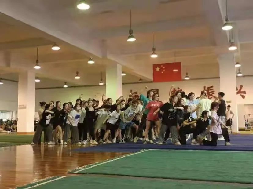 酷暑炎夏,烈日炎炎,238名同学在武术综合套路馆全身心投入排练,在没有电风扇、没有空调的场馆内,同学们汗流满面,不断克服困难认真排练,由于专业特殊性导致部分同学因伤病退出,替补人员立即上场,保证排练能顺利进行。
