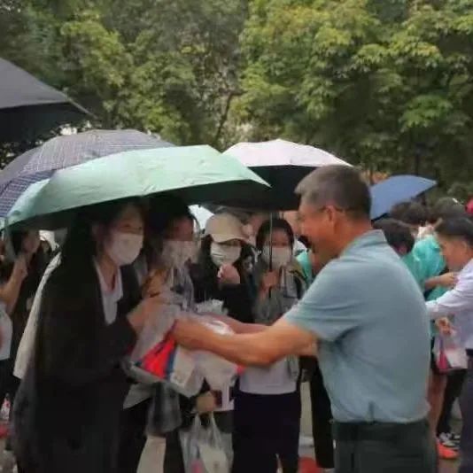 排练后期进入雨季,气温下降,学工部老师带领学生志愿者给演出人员增添衣物。