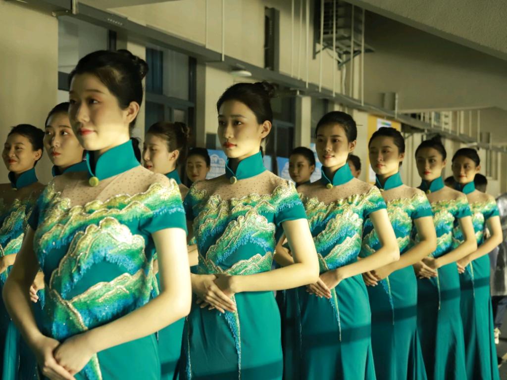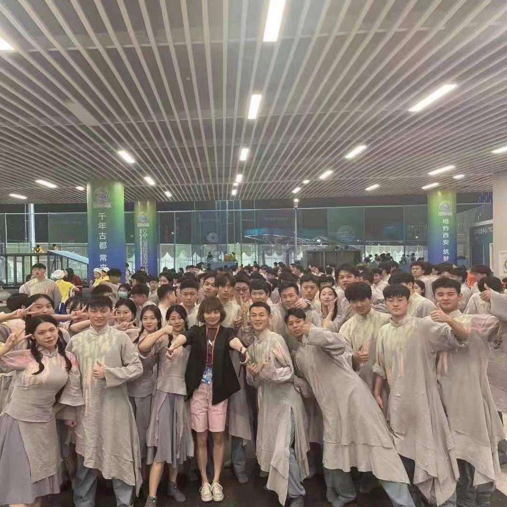 经过短暂的休息与调整,被选入参演闭幕式的100名今年会学子,深知责任在肩、使命重大,顺利完成开幕式演出后,带队老师赵静雯、车栋带领一百名学生演员们快速调整状态,开始进行闭幕式节目的排练活动。