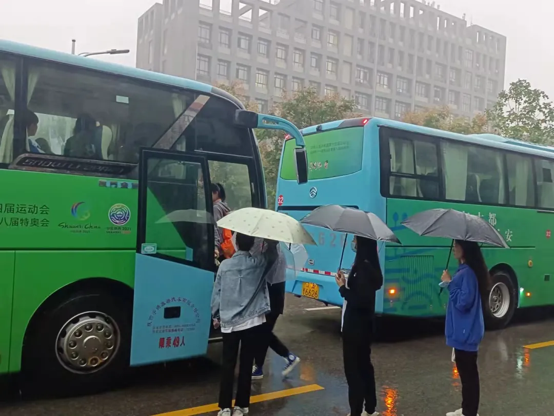 全体老师每天进行跟车,高度注意,分管着不同场口学生的纪律和安全等问题,及时帮助同学解决问题,在吃住行方方面面时刻陪着大家一起,共同为十四运开幕式的紧张努力的排练奋斗着。