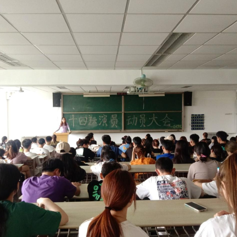 在5月艺术学院召开十四运演员动员大会,会上强调,我们要提高政治站位,深化思想认识,把思想行动统一到实践中来,切实增强政治自觉、思想自觉和行动自觉,以积极昂扬的精神面貌投入到此次演出任务当中,积极准备开幕式排练。